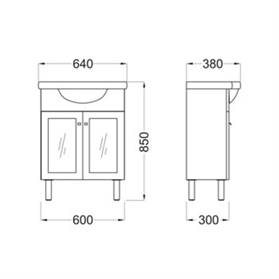 Mueble Venecia 64 cm con patas y 2 puertas de melamina
