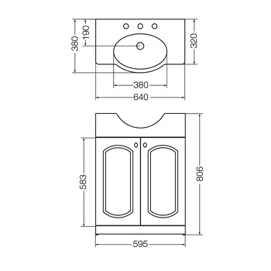 Cod: X6VO MDF Laqueado (Mueble) Se coloca con: Lavatorio de 64 cm L6V1J (1 agujero) Lavatorio de 64 cm L6V3J (3 agujeros)